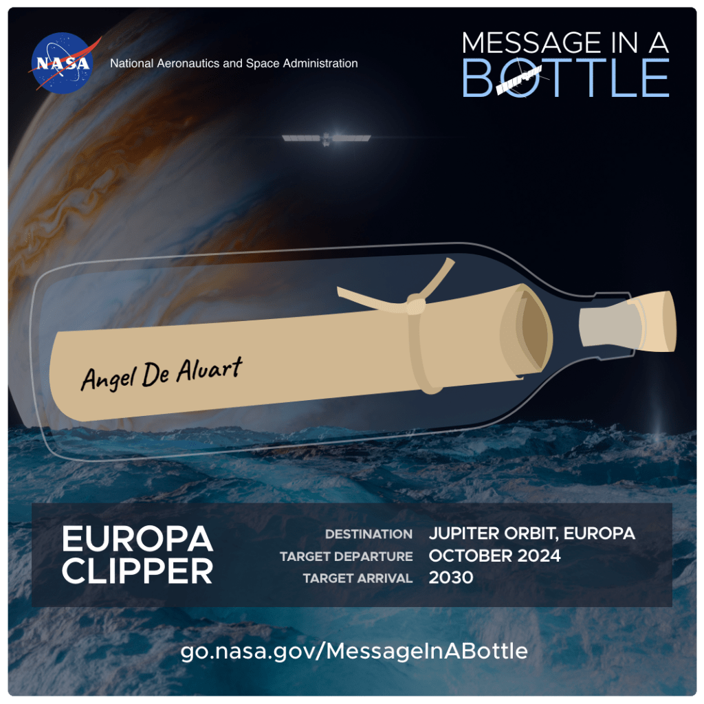 Como curiosidad: Mi nombre estará en el mensaje que la Europa Clipper dejara en la luna del planeta Júpiter: Europa.